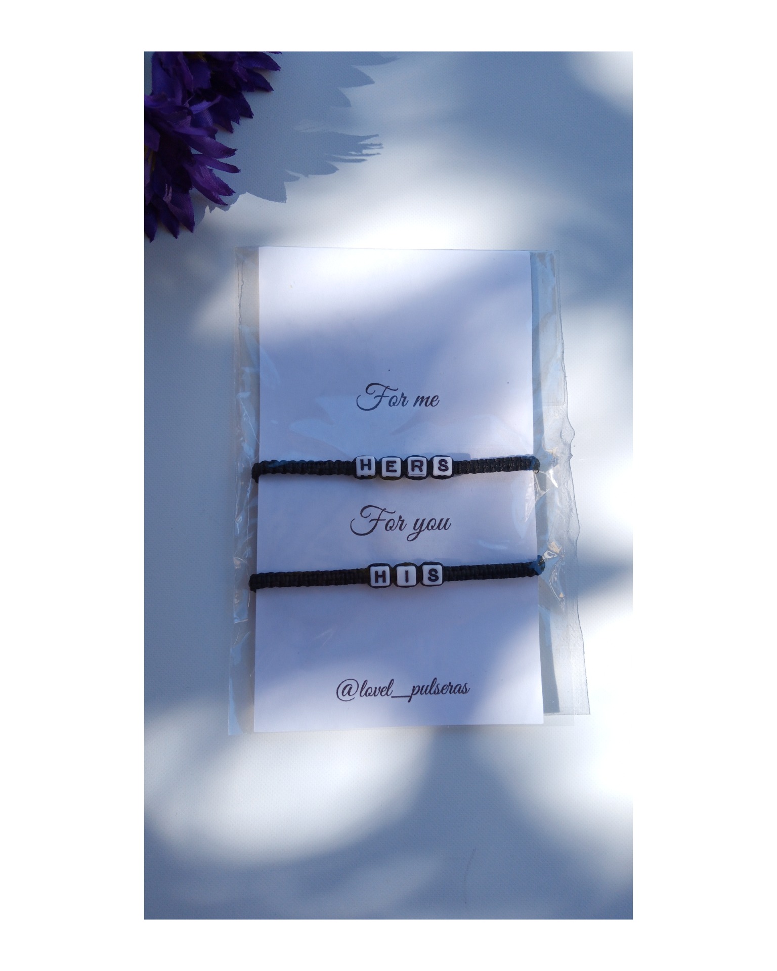 Pulseras de hilo encerado, trenzado simple color negro con letras blancas y negras.
